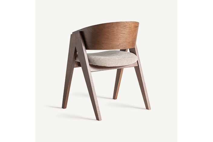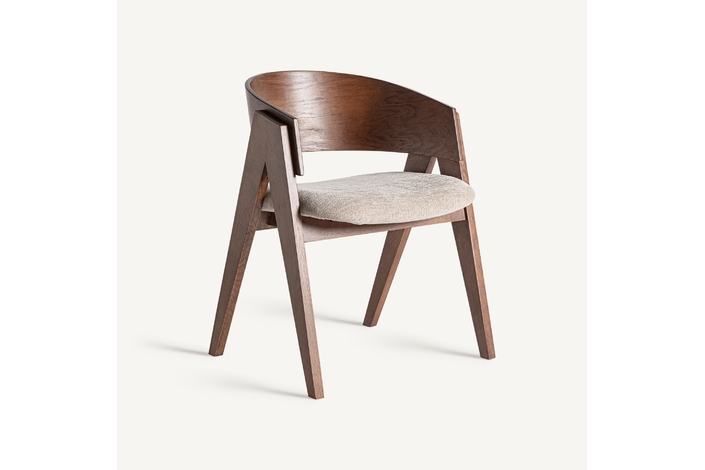 Silla madiran, en color marrón/beige, de estilo colonial. Fabricado en madera roble, combinado con poliéster.
