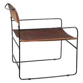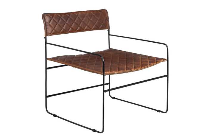 Material: piel, hierro. Ancho asiento: 75cm. Profundidad asiento: 72cm. Altura asiento: 46cm. Altura respaldo: 41cm. Altura reposabrazos: 14cm.