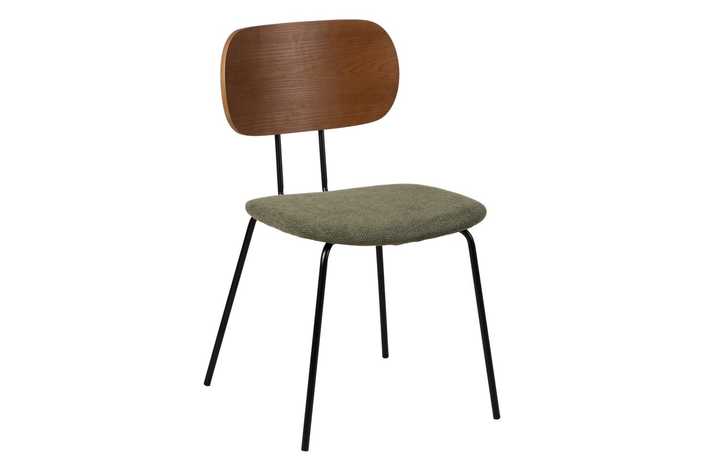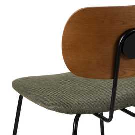 Material: tejido (100% poliéster), metal, madera contrachapada. Altura asiento: 46cm. Profundidad asiento: 42cm. Ancho aisento: 48cm. Altura respaldo: 40cm. Cumple la normativa EN 16139:2013 No apilable.