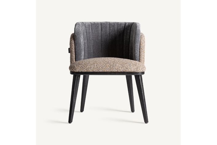 Silla meda, en color tonos de azul, de estilo art deco. Fabricado en terciopelo, combinado con poliéster y madera de caucho.