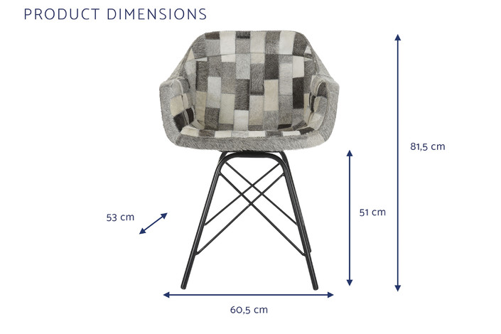 Dimensiones (cm) Longitud 60,5  |  Fondo 53  |  Altura 81,5 Peso neto producto (kg) 7,78 Material Metal  |  Piel