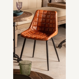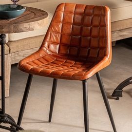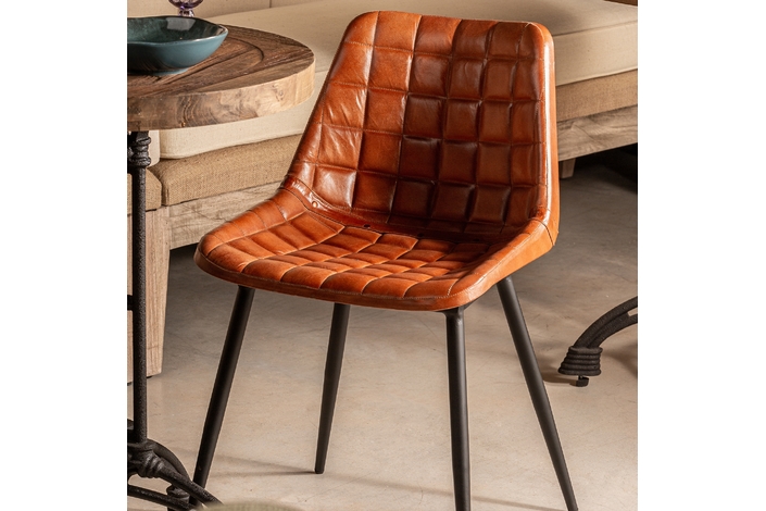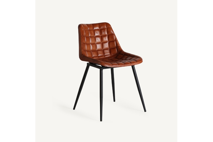 Silla mold, en color marrón, de estilo vintage. Fabricado en hierro, combinado con espuma y piel. Producto desmontable.