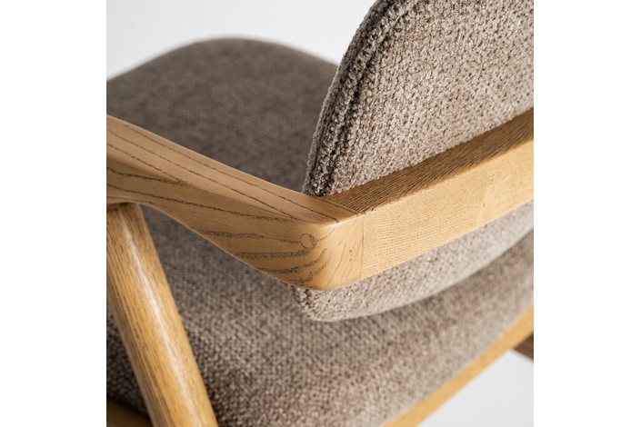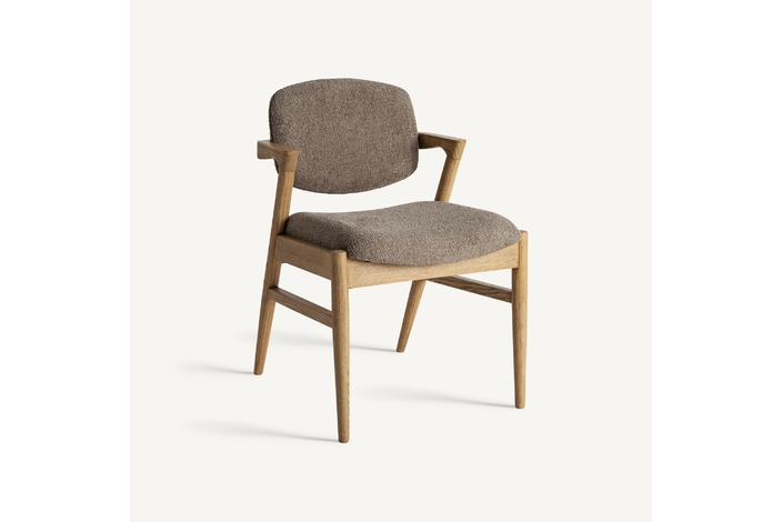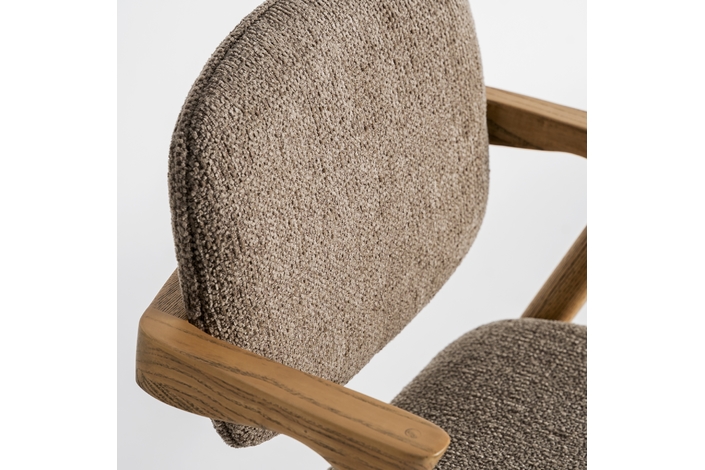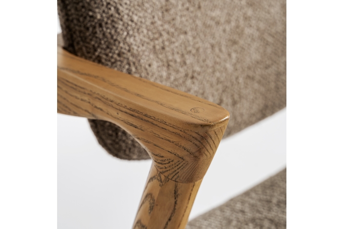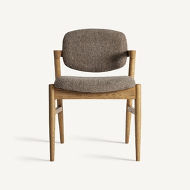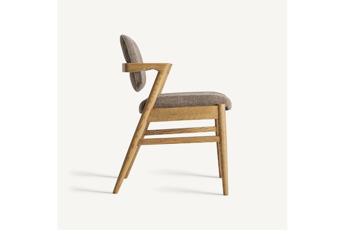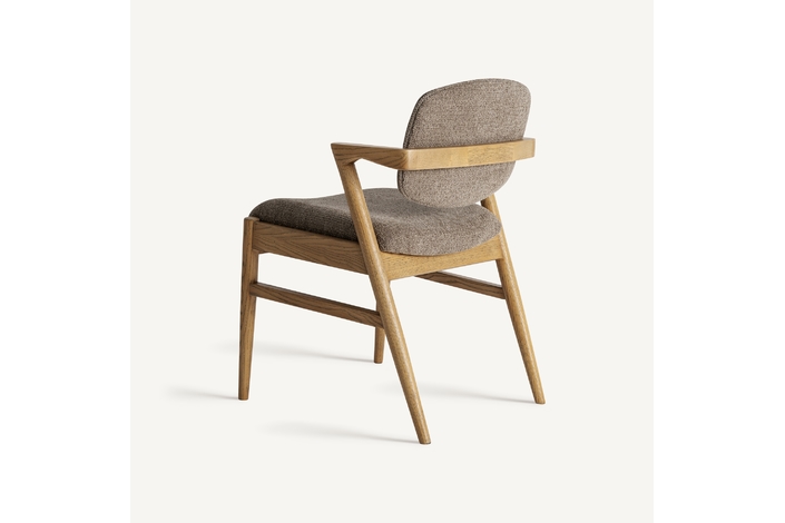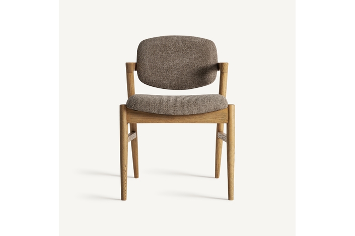 Silla Namur de estilo contemporáneo, fabricado en madera de fresno en color marrón, combinado con lino en color topo y algodón.