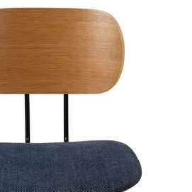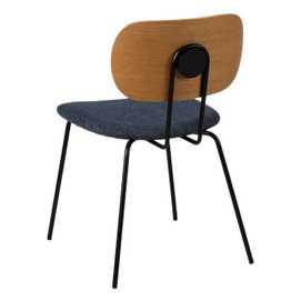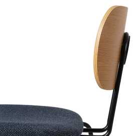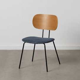 Material: tejido (100% poliéster), metal, madera contrachapada. Altura asiento: 46cm. Profundidad asiento: 42cm. Ancho aisento: 48cm. Altura respaldo: 40cm. Cumple la normativa EN 16139:2013 No apilable.