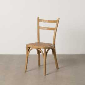 Madera de olmo. Material del asiento: ratán. Mdidas del asientoÇ:45x42,5cm. Altura del asiento:47cm. Altura de las patas:44cm. Altura del respaldo:41cm. Distancia entre las patas:36cm. No apilable. No requiere montaje. Cumple la normativa UNE-EN 16139:2013