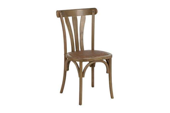 Madera de olmo. Material del asiento: ratán. Mdidas del asiento:45x42,5cm. Altura del asiento:47cm. Altura de las patas:44cm. Altura del respaldo:44,5cm. Distancia entre las patas:36cm. No apilable. No requiere montaje. Cumple la normativa UNE-EN 16139:2013