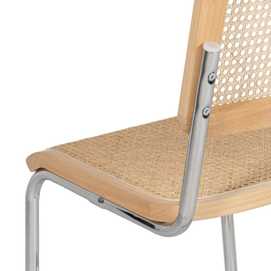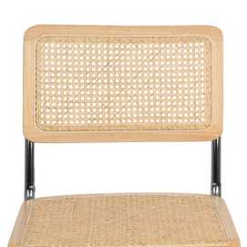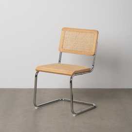 Material: madera de caucho, ratán, metal. Asiento y respaldo de ratán. Altura asiento: 47cm. Altura respaldo: 39,5cm. Altura patas: 42cm. Distancia entre las patas:44,5cm. Peso máximo soportado:110kgs Las patas requieren montaje. No apilable. Cumple con la normativa UNE EN 12520:2016.