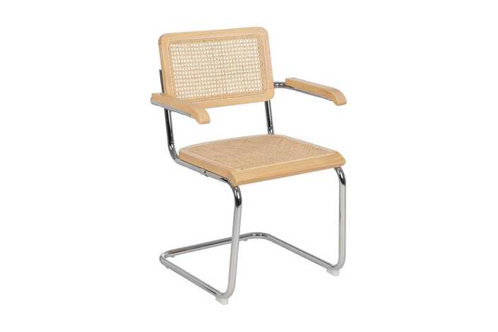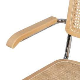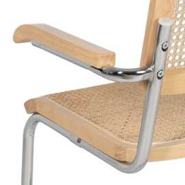 Material: madera de caucho, ratán, metal. Asiento y respaldo de ratán. Altura asiento: 47cm. Altura respaldo: 39,5cm. Altura patas: 42cm. Altura de los reposabrazos:66,5cm. Distancia entre las patas:44,5cm. Peso máximo soportado:110kgs Las patas requieren montaje. No apilable. Cumple con la normativa UNE EN 12520:2016.