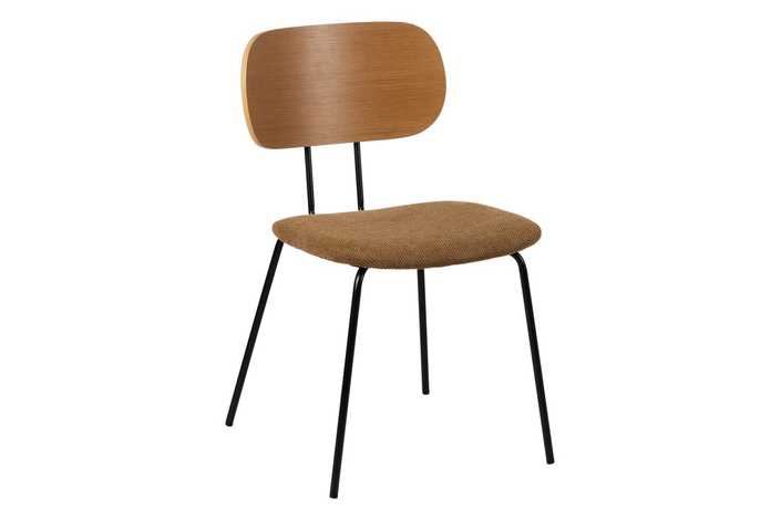 Material: tejido (100% poliéster), metal, madera contrachapada. Altura asiento: 46cm. Profundidad asiento: 42cm. Ancho aisento: 48cm. Altura respaldo: 40cm. Cumple la normativa EN 16139:2013 No apilable.
