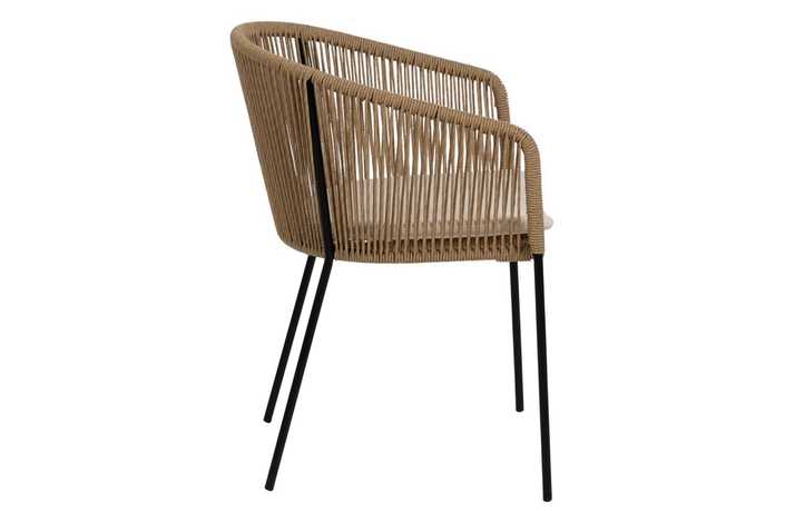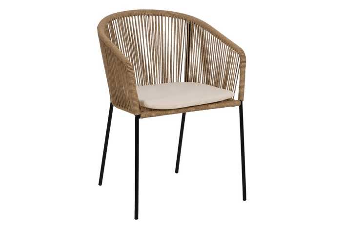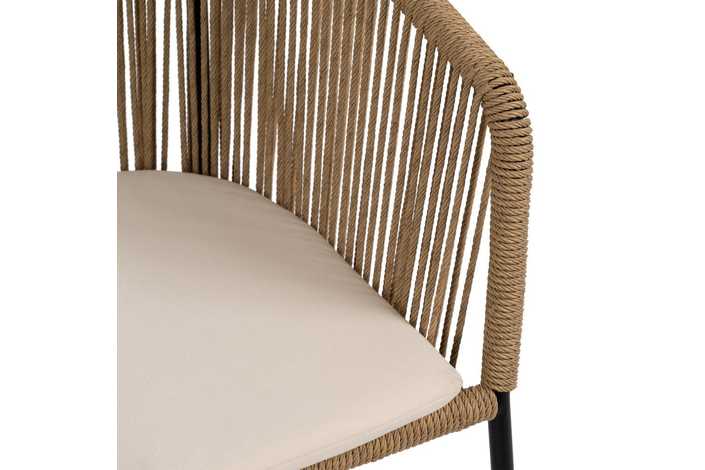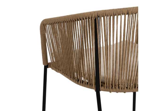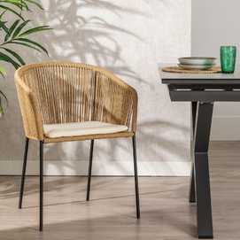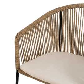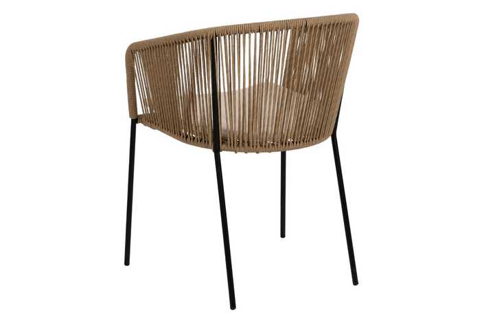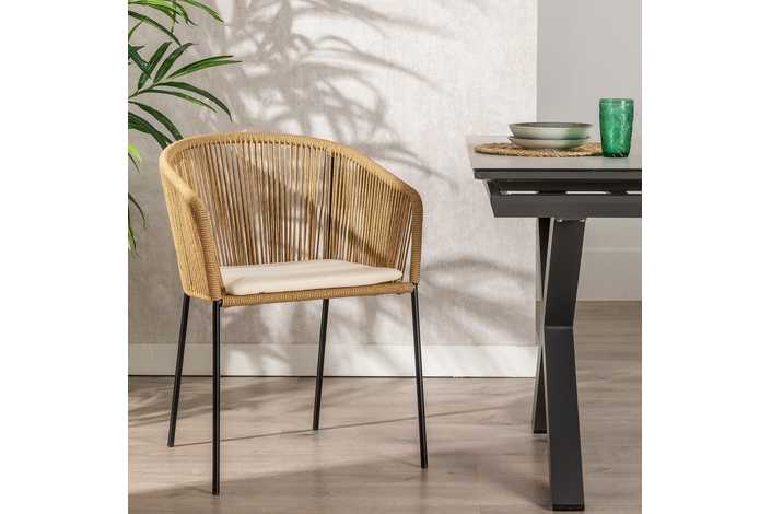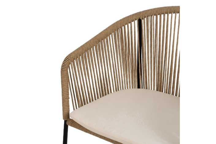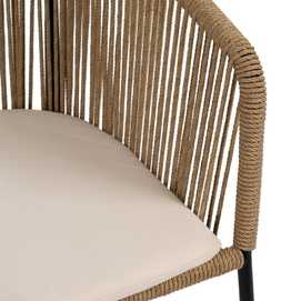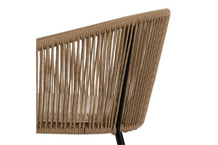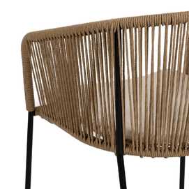 Material: polietileno, acero. Altura asiento: 48cm. Ancho asiento: 43cm. Profundidad asiento: 44cm. Altura respaldo: 34cm. No apilable. Cumple la normativa EN581 (uso exterior).