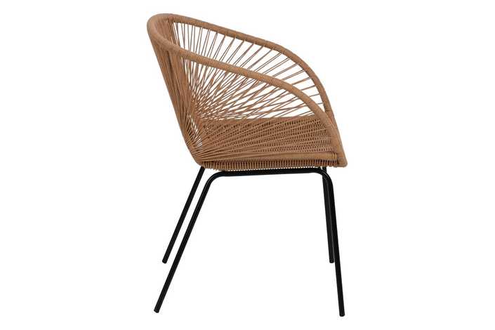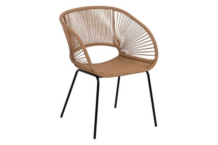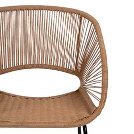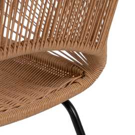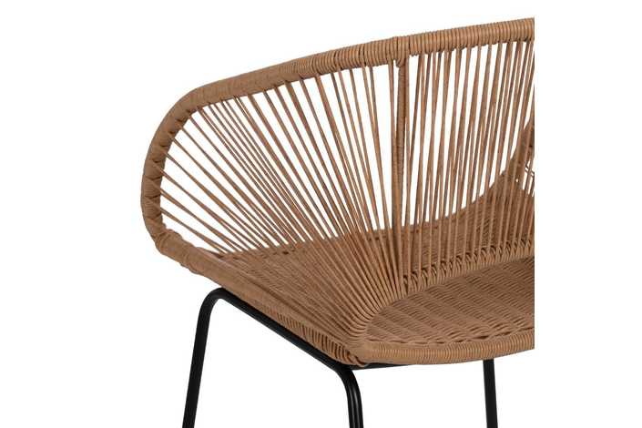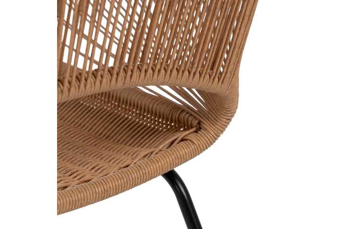 Material: polietileno, acero. Altura asiento: 44cm. Ancho asiento: 41cm. Profundidad asiento: 41cm. Altura respaldo: 30cm. No apilable. Cumple la normativa EN581 (uso exterior).