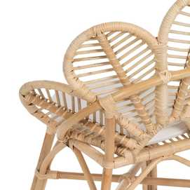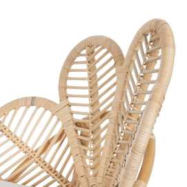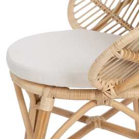 Material: ratán. Altura asiento: 49cm. Ancho asiento: 45cm. Profundidad asiento: 45cm. Altura patas: 18cm. Altura respaldo: 49cm. Cojín desenfundable.