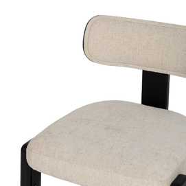 Madera de olmo. Tejido de lino. Altura del asiento:48cm. Altura de las patas:40cm. Altura del respaldo:19cm. Distancia entre las patas:49cm. Tejido:lino Relleno:Foam. Densidad del asiento:28kgs/m3. Densidad del respaldo:24kgs/m3 Gramaje 380. No apilable. Requiere montaje. Peso soportado:130kgs. Cumple la normativa UNE-EN 16139:2013