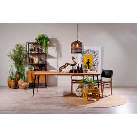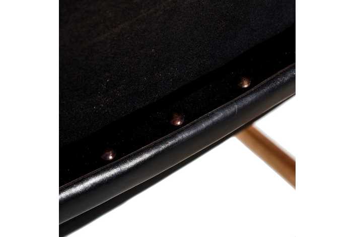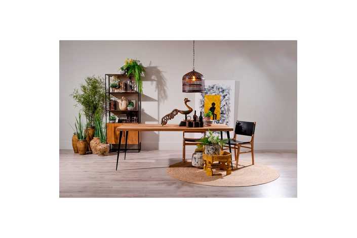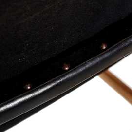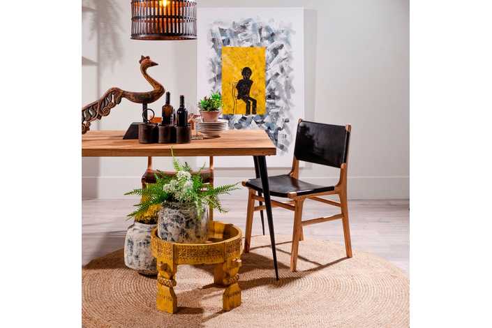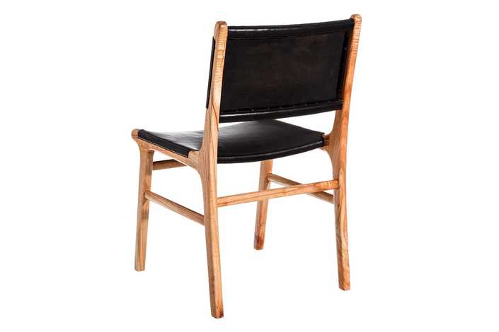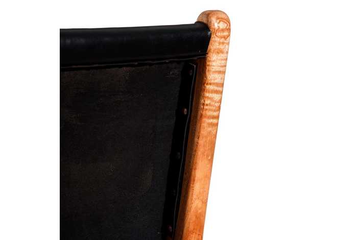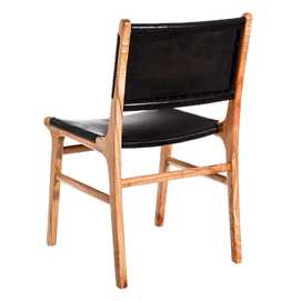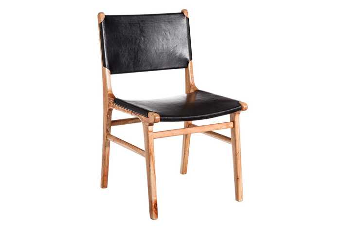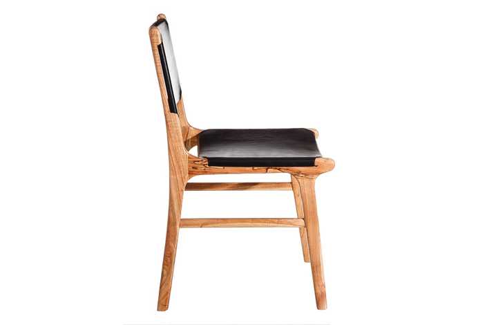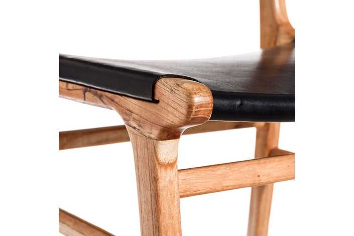 MADERA MACIZA DE TEKA ACABADO A LA CERA EN COLOR NATURAL Y PIEL ACABADO NEGRO. Altura asiento: 47cm.