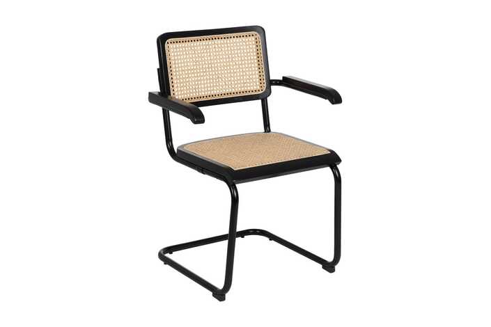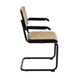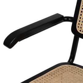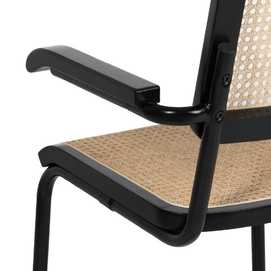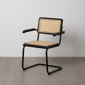 Material: madera de caucho, ratán, metal. Asiento y respaldo de ratán. Altura asiento: 47cm. Altura respaldo: 39,5cm. Altura patas: 42cm. Altura de los reposabrazos:66,5cm. Distancia entre las patas:44,5cm. Peso máximo soportado:110kgs Las patas requieren montaje. No apilable. Cumple con la normativa UNE EN 12520:2016.