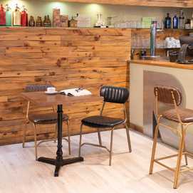 Material: Pu-metal hierro Altura del asiento: 46cm. No apilable. Cumple normativa EN12520:2016