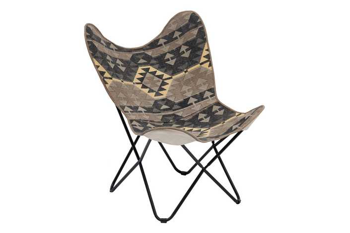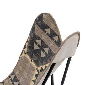 Material: hierro, tejido (100% algodón pintado a mano). Ancho asiento: 67cm. Profundo: 38cm. Altura respaldo: 44cm. Altura asiento: 42cm.