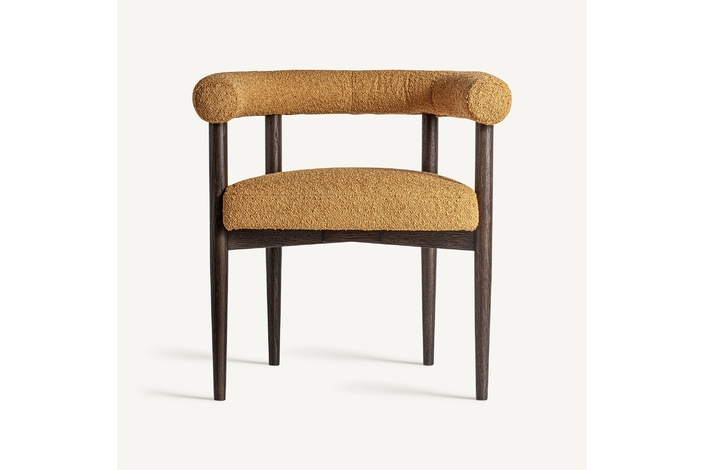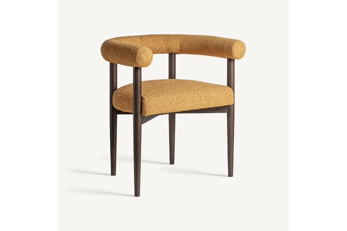 Silla neuffen, en color mostaza, de estilo art deco. Fabricado en poliéster, combinado con madera de fresno.