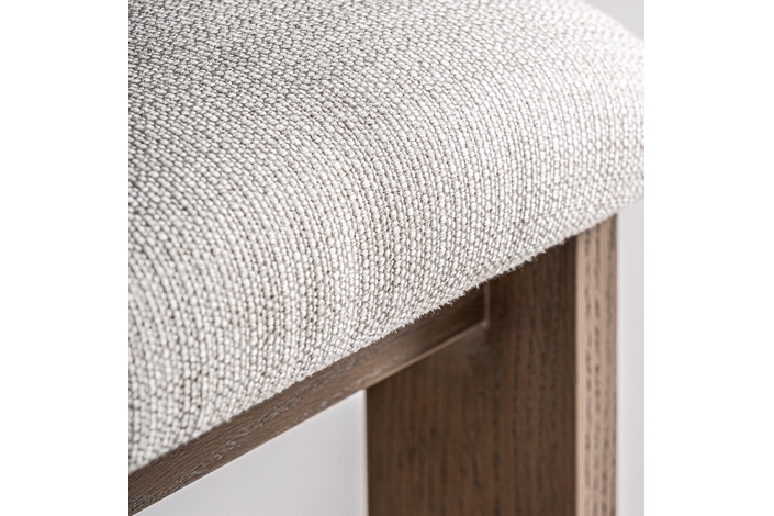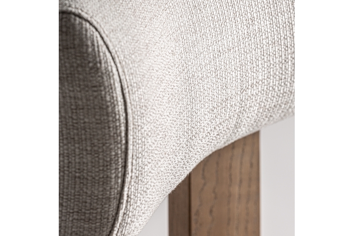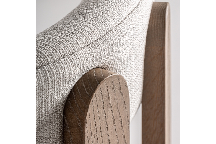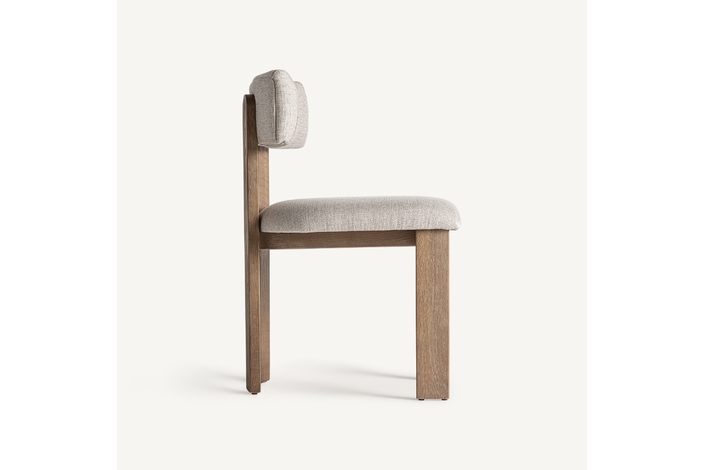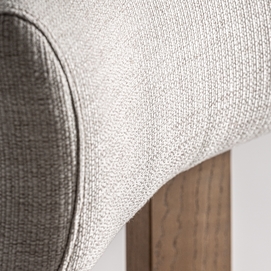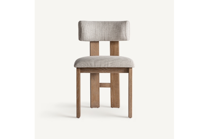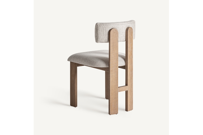 Silla oris, en color blanco roto, de estilo contemporáneo. Fabricado en madera de fresno, combinado con poliéster y espuma.