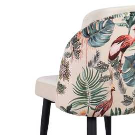 Material: Tejido (100% poliéster). Patas de acero, para montar. Altura asiento: 47m. Altura patas: 39cm. Altura respaldo: 37,5cm. Profundidad asiento: 43cm. Ancho asiento: 49cm. Las posibles sombras o marcas en el tejido son debidas al embalaje de las piezas. Desapareciendo fácilmente con la aplicación de vapor. Cumple normativa: EN16139:2013 No apilable.