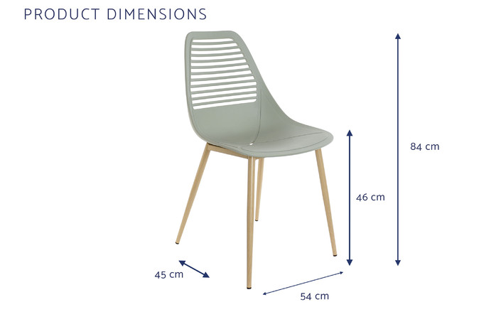 Dimensiones (cm) Longitud 54  |  Fondo 45  |  Altura 84 Peso neto producto (kg) 0,95 Material Pp  |  Metal
