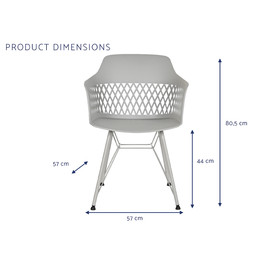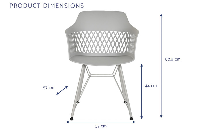 Dimensiones (cm) Longitud 57  |  Fondo 57  |  Altura 80,5 Peso neto producto (kg) 5,10 Material Pp  |  Metal