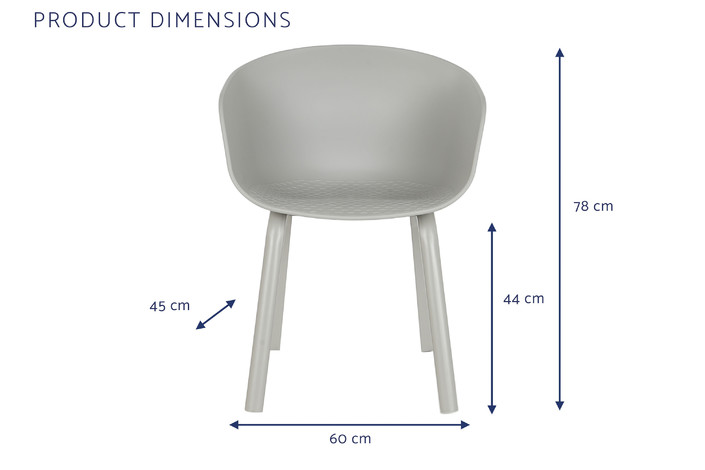 Dimensiones (cm) Longitud 60  |  Fondo 55  |  Altura 78 Peso neto producto (kg) 6,30 Material Pp  |  Metal