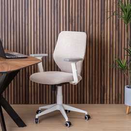 Material: pvc - hierro Tejido: 100% poliéster Altura máxima alcanzada: 104.5cm. Medida asiento: 49x49cm. Medida respaldo: 49x60.5cm. Altura, reposabrazos y respaldo regulables. UNE-EN 1335-1:2021 + A1:2023
