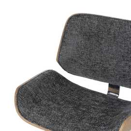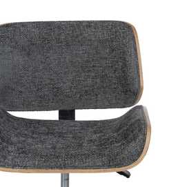 Material: 100% poliéster Trasera madera conglomerada nogal. Patas: negro. Giratorio 360º Relleno: foam Densidad: 30kgr./m2 Altura asiento: mínimo 46 - máximo 58cm. Medida asiento: 54x43cm. Altura respaldo: 36cm. fijo Para montar. Cumple normativa EN1335