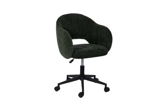 Tejido 100% poliéster. Estructura respaldo de metal y espuma. Estructura asiento de madera contrachapada y espuma. Mecanismo y base de hierro. Ruedas de nylon. Altura asiento: 45/53cm. Ancho asiento: 43cm. Profundidad asiento: 43cm. Altura respaldo: 36cm. Altura reposabrazos: 22cm. Cumple la normativa EN12520.