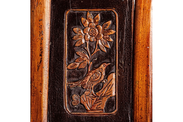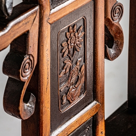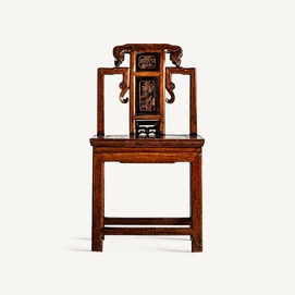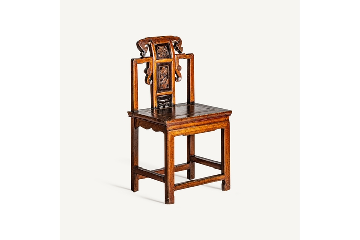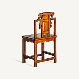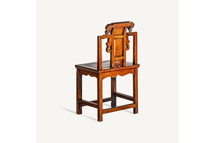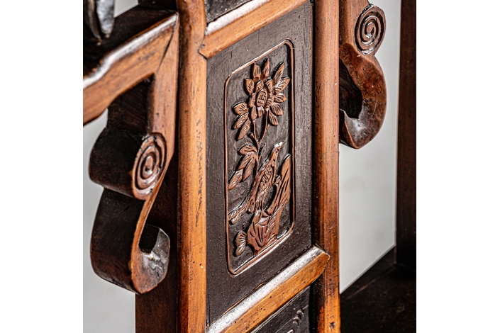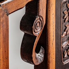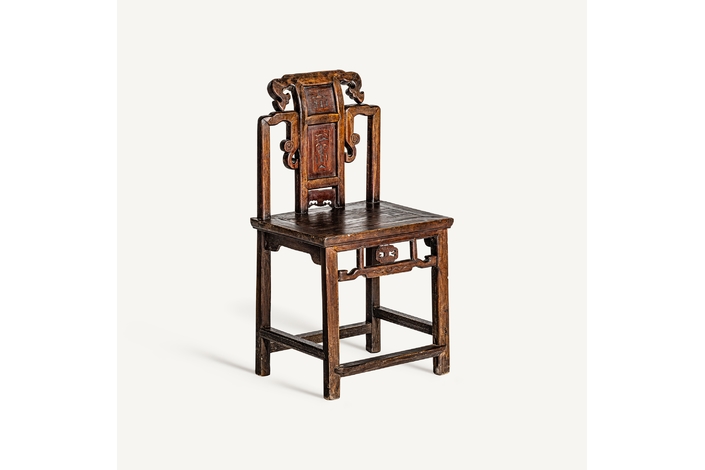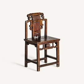 Silla saitlaw, en color marrón envejecido, de estilo oriental. Fabricado en madera de olmo.