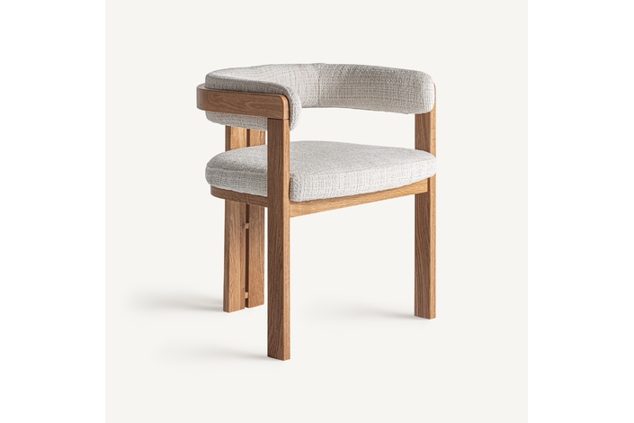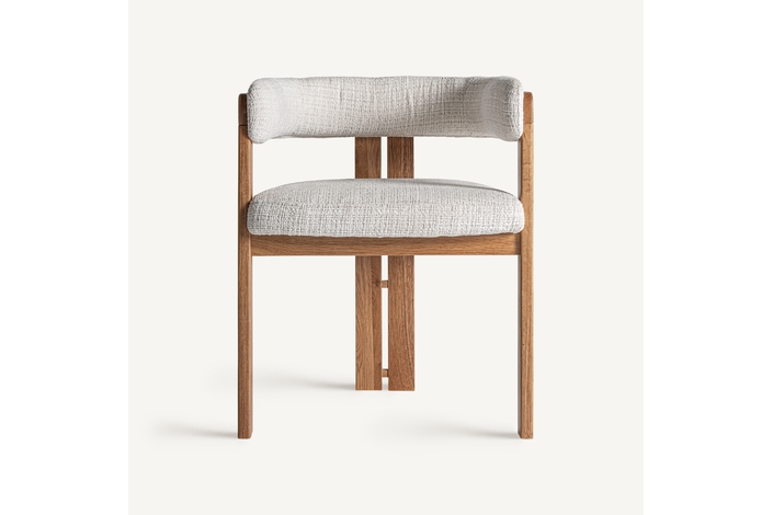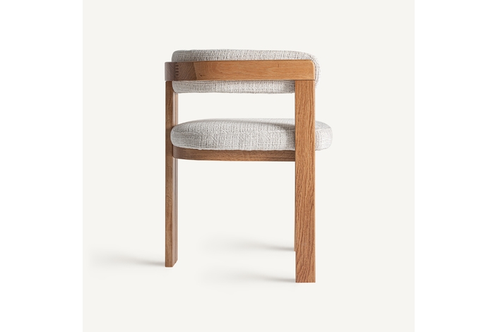 Silla sedzere, en color marrón/beige, de estilo colonial. Fabricado en madera roble, combinado con poliéster.