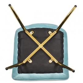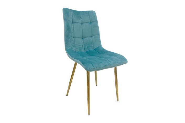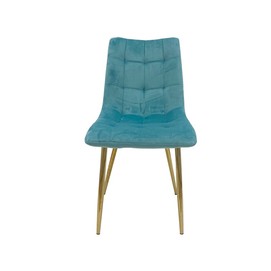 Silla de diseño, armazón metálico con acabado dorado, asiento y respaldo tapizados en tejido velvet de color verde agua. Otros colores disponibles.