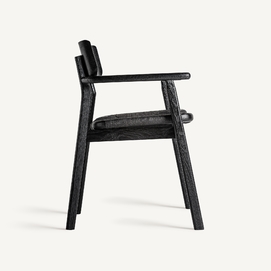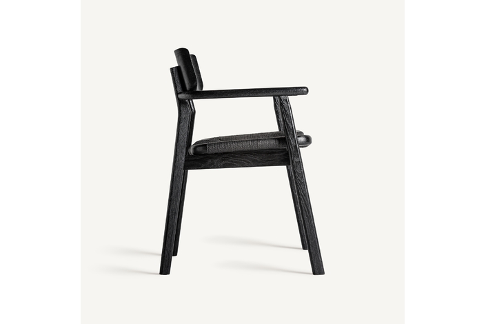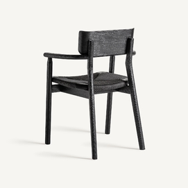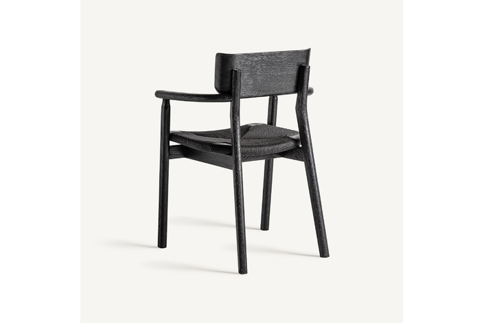 Silla tasque, en color negro, de estilo vintage. Fabricado en madera roble, combinado con fibra natural.