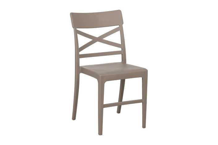 Material: polipropileno. Altura del asiento:45cm Altura de las patas:40cm Altura respaldo:41cm Medidas asiento:39x40x5cm Distancia entre patas:34,5cm. Aplilable. Con protección UV, aptas para exterior. Cumple con la normativa UNE EN 16139:2013