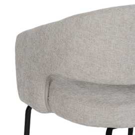 Tejido: Poliéster. Relleno:foam Densidad del relleno: 28kg/m3. Material de las patas: Hierro Altura del asiento:48cm Altura de las patas:42cm. Altura del respaldo: 34 cm. Medidas del asiento: cm. Distancia entre las patas: 57 cm. Peso máximo soportado:140kgs. No apilable. No necesita montaje. Cumple normativa EN16139:2013 (Catering).