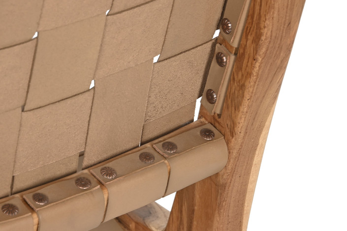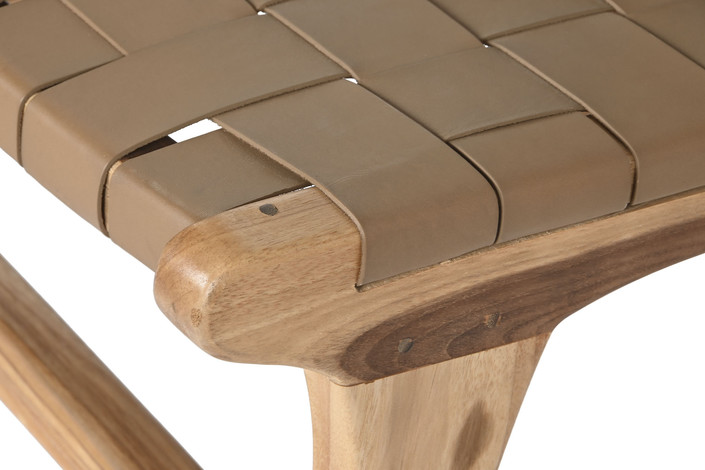 Dimensiones (cm) Longitud 50  |  Fondo 58  |  Altura 85 Peso neto producto (kg) 7,00 Material Teca  |  Piel