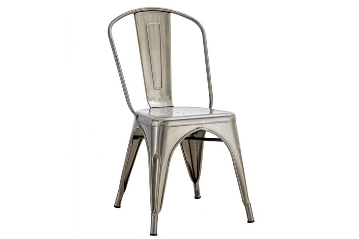 Silla de diseño, estructura de acero, cepillada, acabado plata. Uso en interiores o exteriores. Otros acabados y colores disponibles. Taburete a juego.