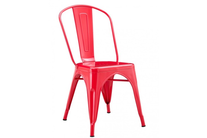 Silla de diseño, estructura de acero, pintada en rojo. Uso en interiores o exteriores. Otros acabados y colores disponibles.