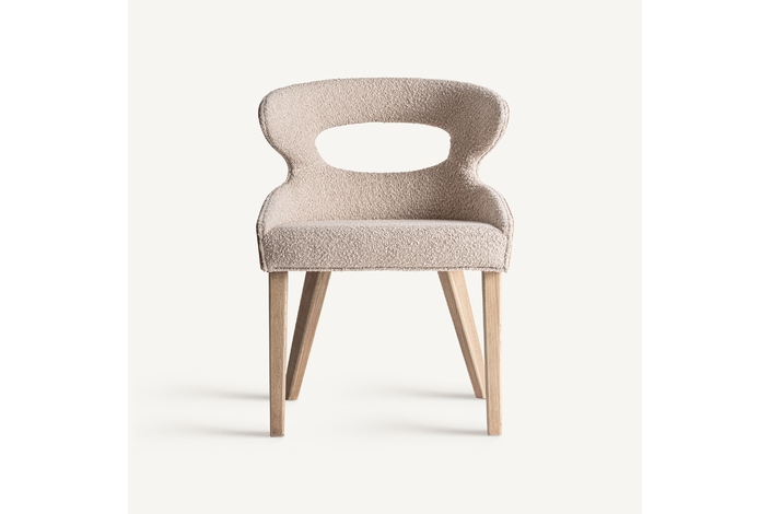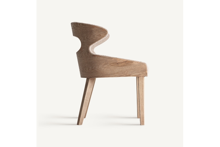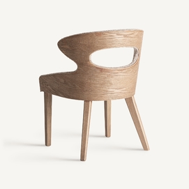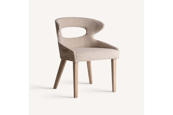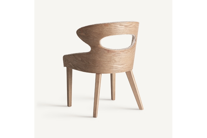 Silla Trebas de estilo contemporáneo, fabricado en madera de fresno en color marrón claro, combinado con poliéster en color beige.
