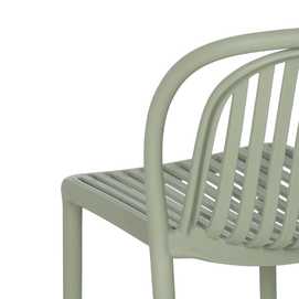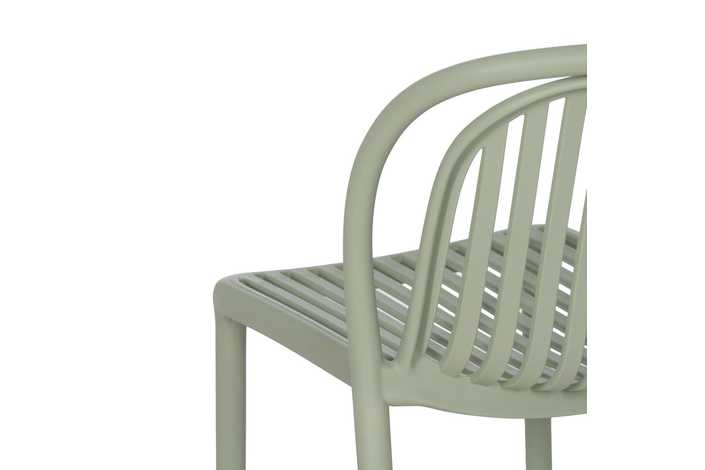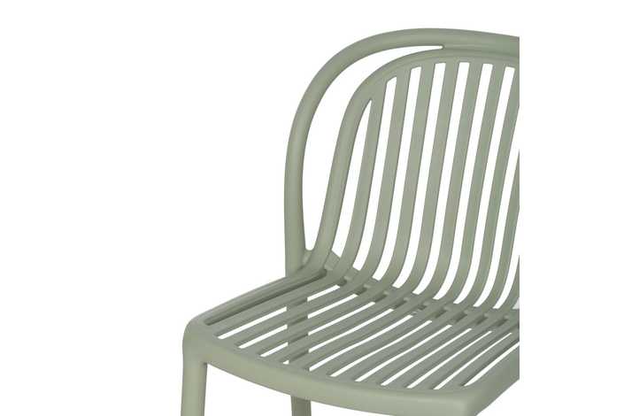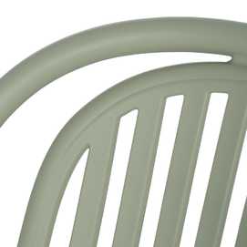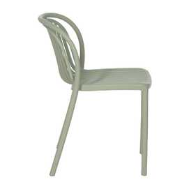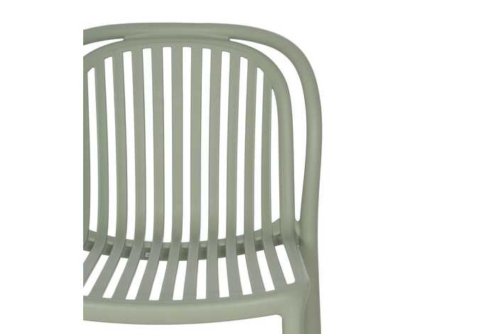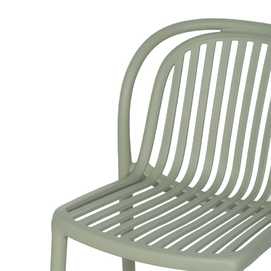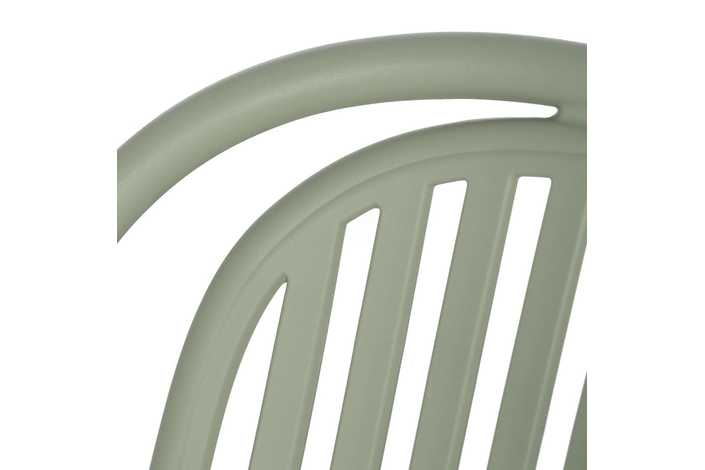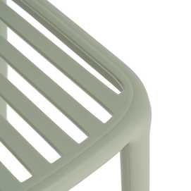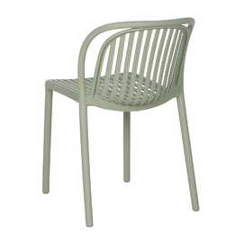 Material: polipropileno. Altura del asiento: 45cm. Ancho asiento: 41,5cm. Profundidad asiento: 42cm. Altura respaldo: 36cm. Apilable. Cumple la normativa EN581 (uso exterior).