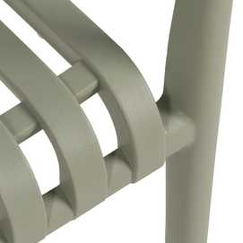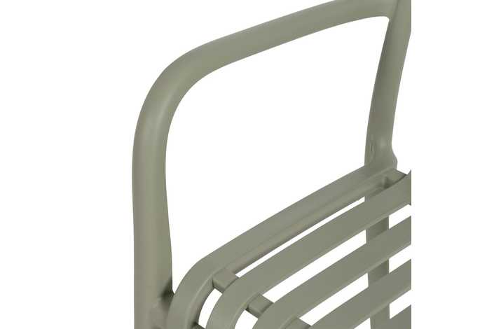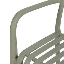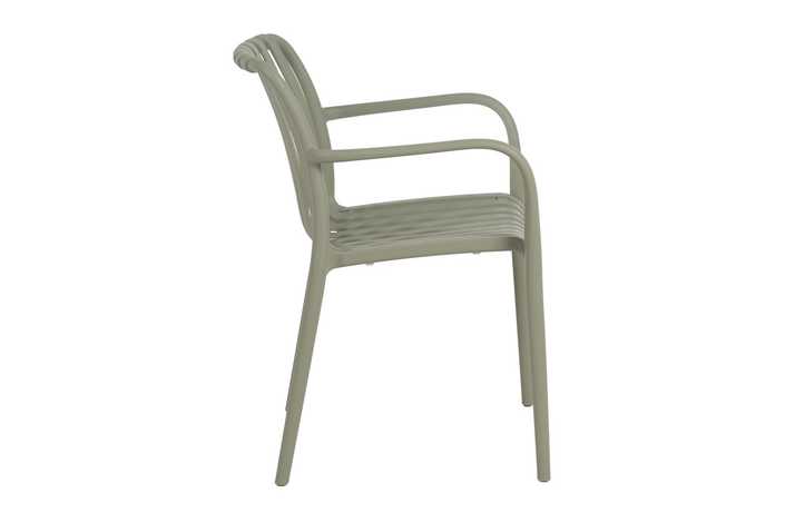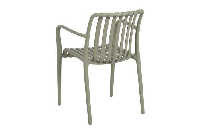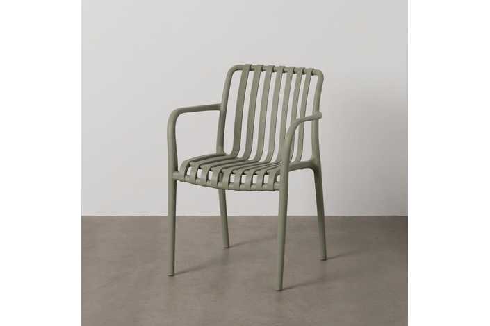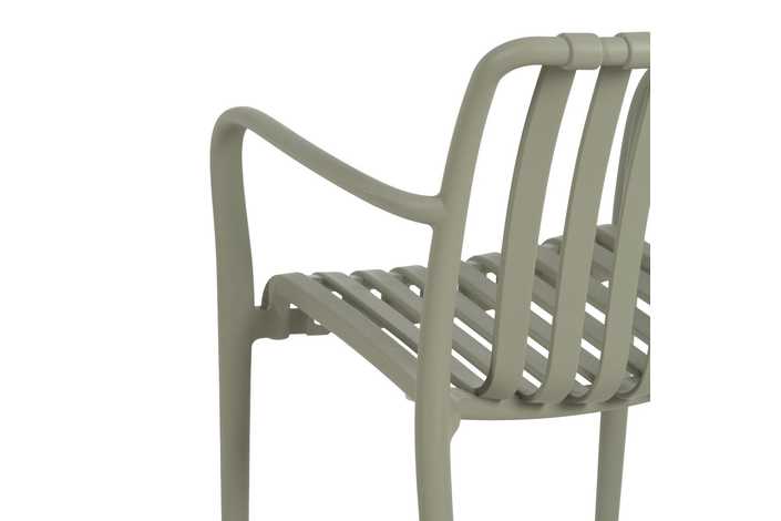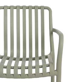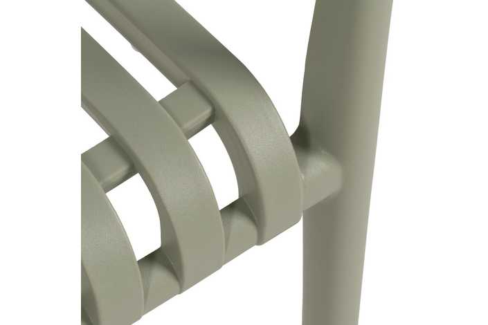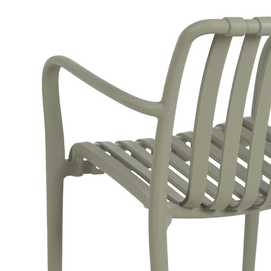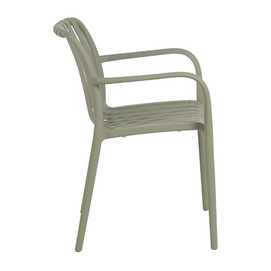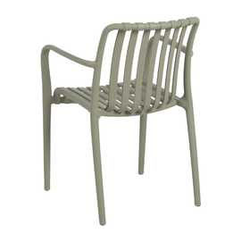 Material: polipropileno. Altura asiento: 46cm. Ancho asiento: 45cm. Profundidad asiento: 41cm. Altura respaldo: 40cm. Altura reposabrazos: 20cm (67cm desde el suelo). Apilable. Cumple la normativa EN581 (uso exterior).