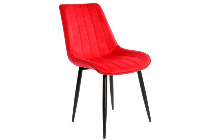 Silla de diseño, armazón metálico con acabado epoxi negro, tapizado en velvet rojo. Otros colores disponibles.
