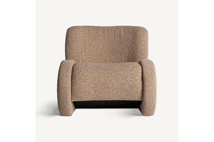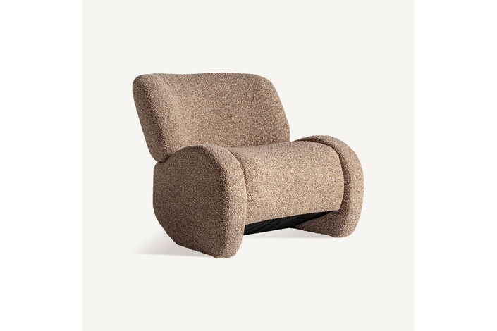 Sillón, en color marrón. Fabricado en madera de pino, combinado con poliéster y madera de haya.