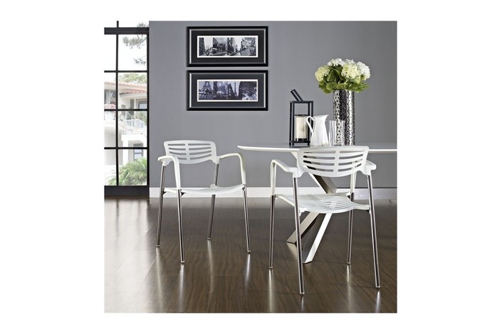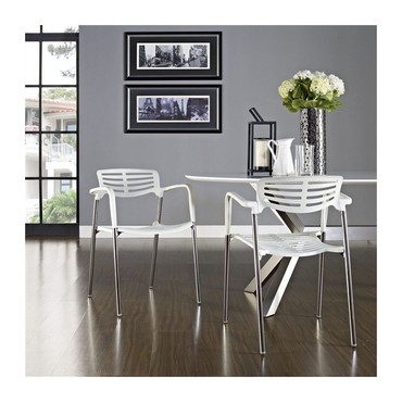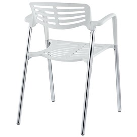Sillón de diseño, apilable, cromado, polipropileno blanco.