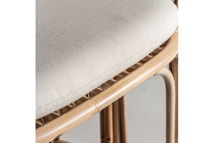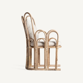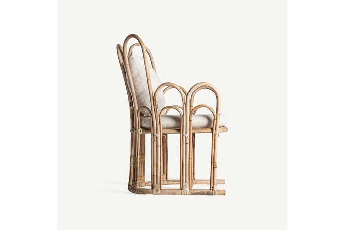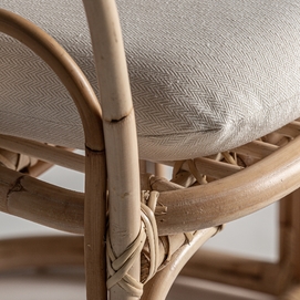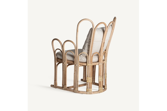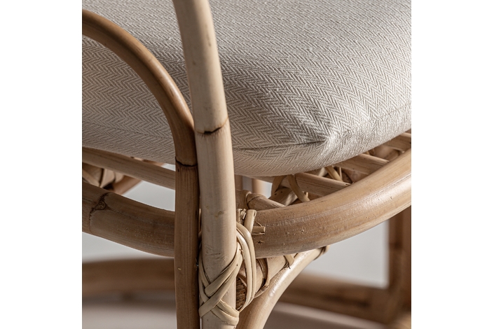 Sillón arzana, en color marrón, de estilo contemporáneo. Fabricado en ratán, combinado con algodón y poliéster. Producto desenfundable.