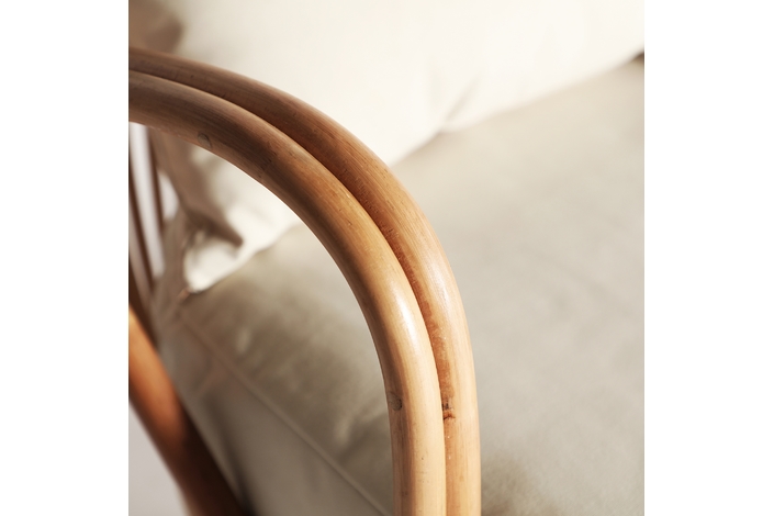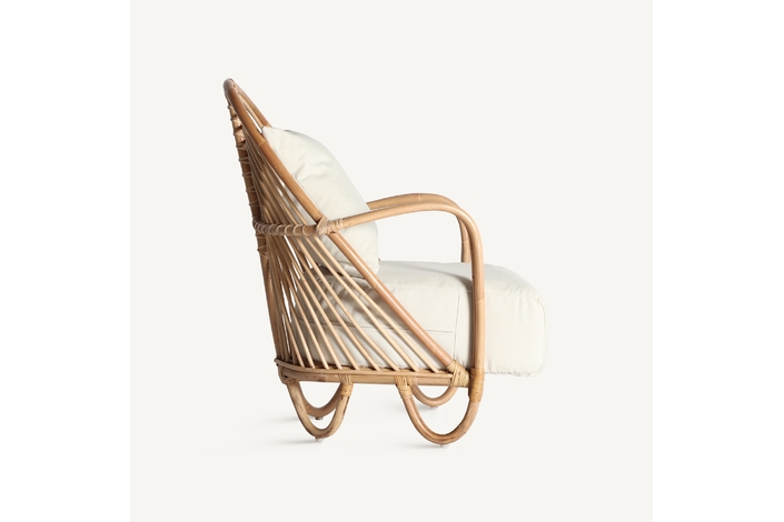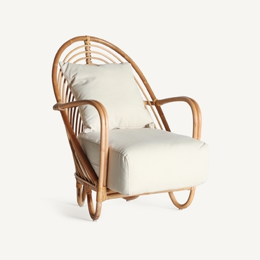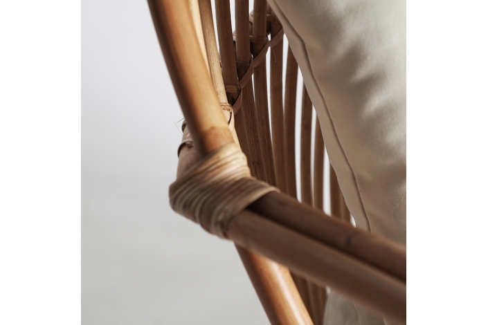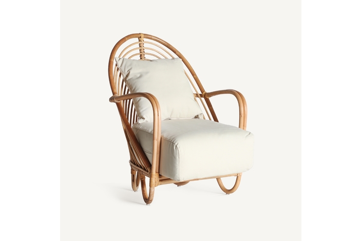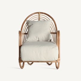 Sillón baldi, en color marrón, de estilo contemporáneo. Fabricado en ratán, combinado con poliéster. Producto desenfundable.