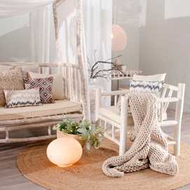 Ancho asiento: 60cm. Profundidad del asiento: 60cm. Altura respaldo: 50cm. Altura asiento: 30cm. Cojín desenfundable.