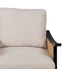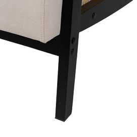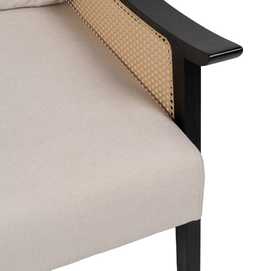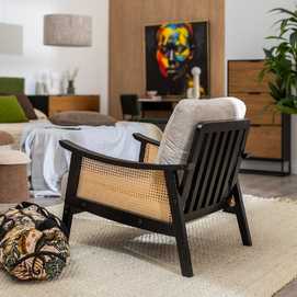Material estructura: Madera de caucho,polietileno, DM. Tejido: 100% poliéster. Altura del asiento:42cm. Altura de las patas:18,5cm. Altura de los brazos:15cm. Altura del respaldo: 45cm. Medidas del asiento:58x53x17cm. Distancia entre las patas:59cm. Relleno: Foam/Algodón PP. Densidad: 25gr/cm3 Peso máximo soportado:110kgs. Requiere montaje. Cumple la normatiba UNE EN 12520:2015.