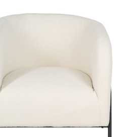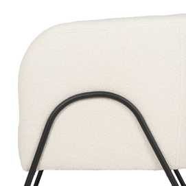Material: metal y poliéster. Altura asiento: 46cm. Altura respaldo: 39,5cm. Altura patas: 48,5cm. Altura de los reposabrazos:67cm. Gramaje:20kg/m3. Relleno: foam y algodón elástico. Las patas requieren montaje. No apilable. Cumple con la normativa UNE EN12520:2016.